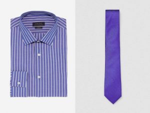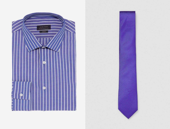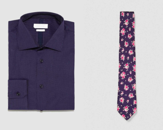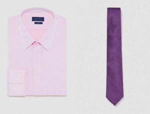 La combinación de dos tonalidades diferentes de un solo color es lo que un look necesita para verse actualizado. Camisa en color rosado y una corbata morada (o ultravioleta, como el color del año).