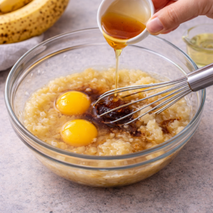 - Añade los huevos, vainilla, miel y aceite
