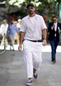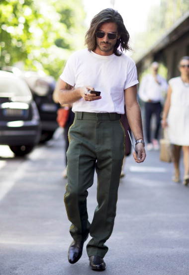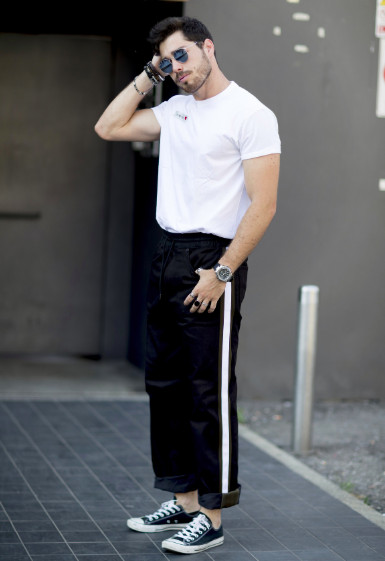 Con un pantalón tipo jogger o con rayas laterales se consigue un look fácil y muy cómodo gracias a la polera blanca.