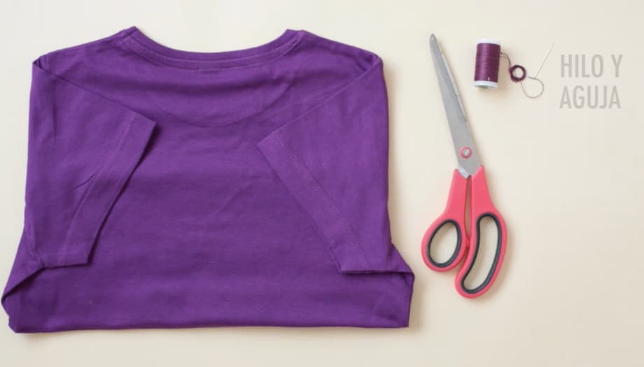 Camiseta o playera vieja, aguja, hilo y tijeras