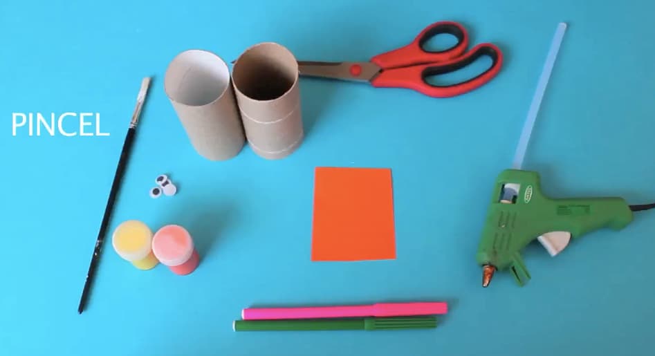 conos de cartón, témperas, pegamento en barra, tijeras, cartulina, ojos de juguete