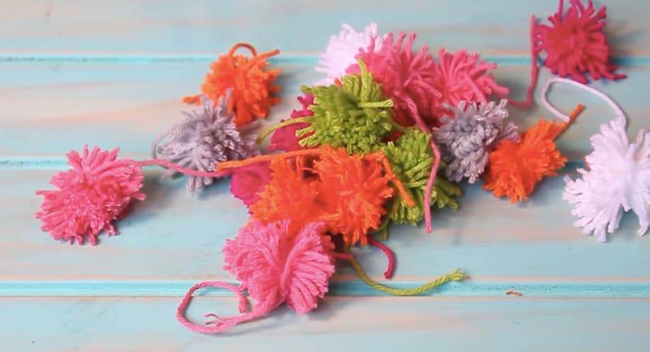 5- Amarramos a una lana larga, todos los pompones de colores. 6- ¡Listo!