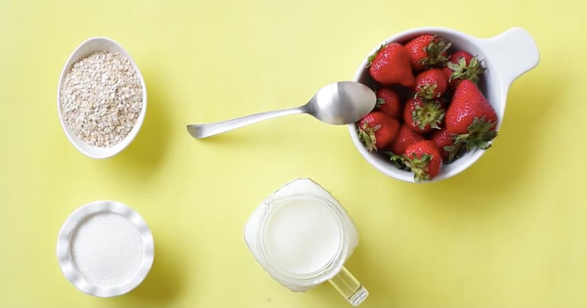Materiales: 2 tazas de leche, fresas, 2 cucharadas de avena, 2 cucharadas de azúcar y licuadora.
