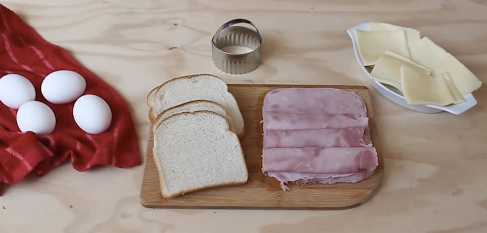 Huevo, pan sandwich, queso y jamón.