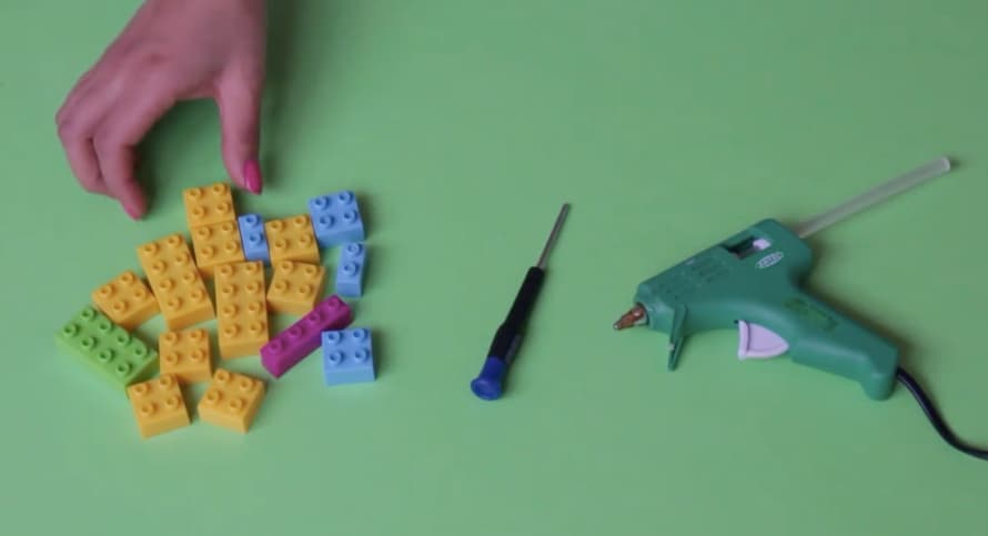Bloques de lego plásticos, destornillador, pegamento de silicón.