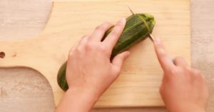7- Extendemos el queso ricotta en las láminas de zucchini, agregamos pollo y formamos un roll