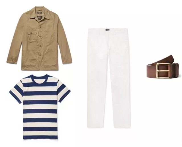Si eres de piel pálida mejor quédate con un traje de hombre de un color más oscuro. Para el resto, esta combinación puede quedarles muy bien. En cuanto a los complementos, puedes llevarlo sin corbata y añadirle un toque de color con el cinturón azul. Si es con corbata, elige una de color liso azul marino o verde oscuro. Y los zapatos que sean marrones.
