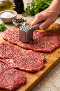 - Si la carne está muy gruesa, golpéala con un uslero o martillo de cocina.