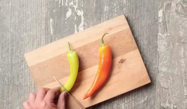 Chiles pimientos, chiles picantes (jalapeño), cebollín y salsa de queso.
