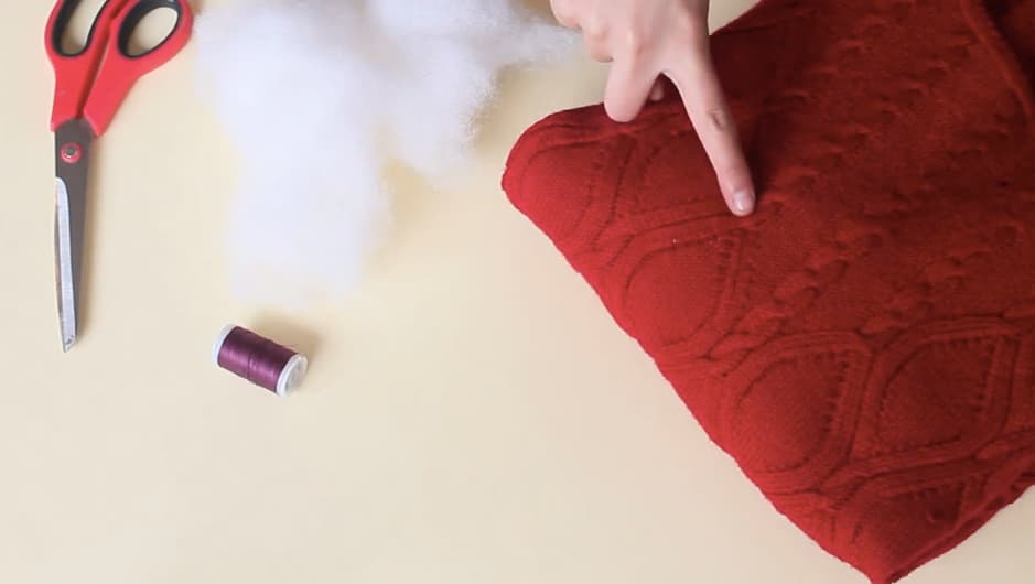 Suéter viejo, hilo, algodón o relleno sintético y tijeras.