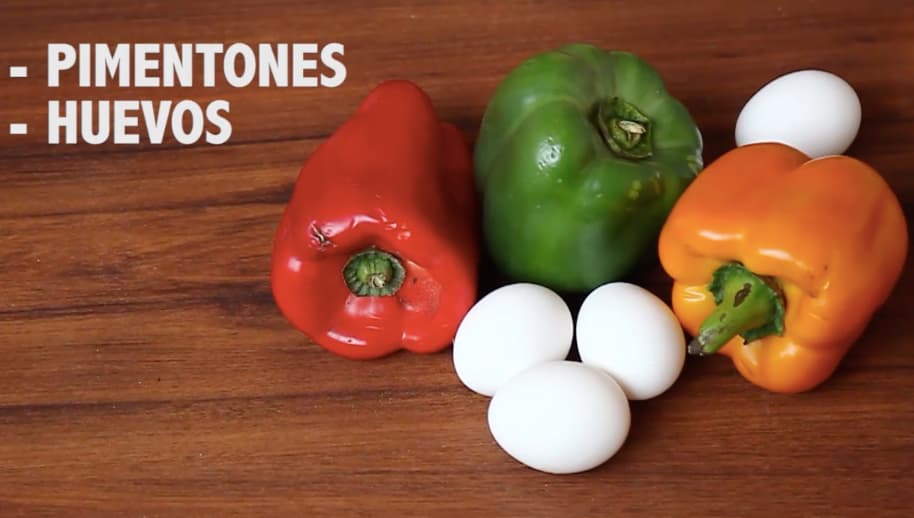 Huevos, chiles rojos (pimientos) grandes y aceite.
