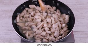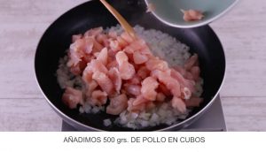 3. Añadimos 500 grs. De pollo en cubos