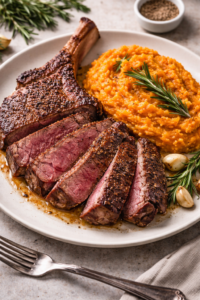 Si buscas un plato que combine sabor, elegancia y un toque gourmet, esta receta de tomahawk con romero acompañado de puré de camote es perfecta. La jugosidad de la carne y el dulzor del camote crean una combinación irresistible.