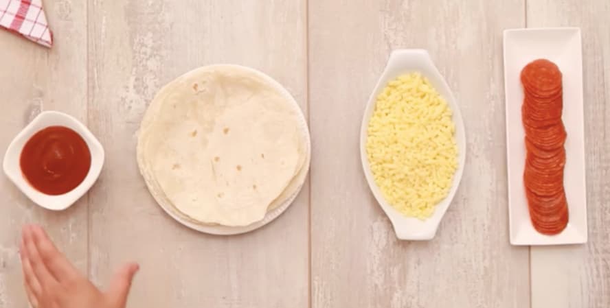 Un rico y fácil almuerzo: Quesadillas! 46299 Ingredientes: fajitas Queso Salsa de tomate Pepperoni Preparación: 1- Añadimos salsa de tomate a las fajitas 2- Agregamos el queso a la mitad de la masa 3- Agregamos el pepperoni 4- Doblamos y horneamos